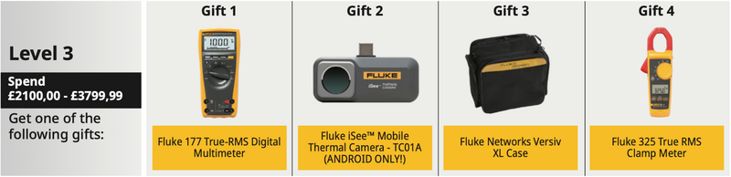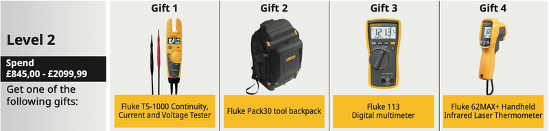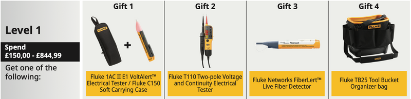 Ha nettó 150 €-nál többet költ, egy nagyszerű Fluke terméket kap, teljesen INGYEN! Minél többet költ, annál nagyobb értékű az ajándék termék.